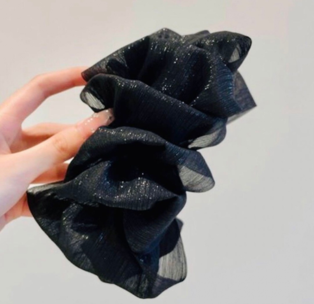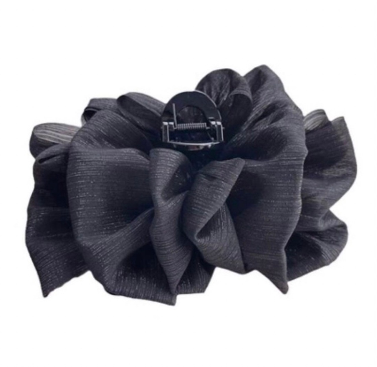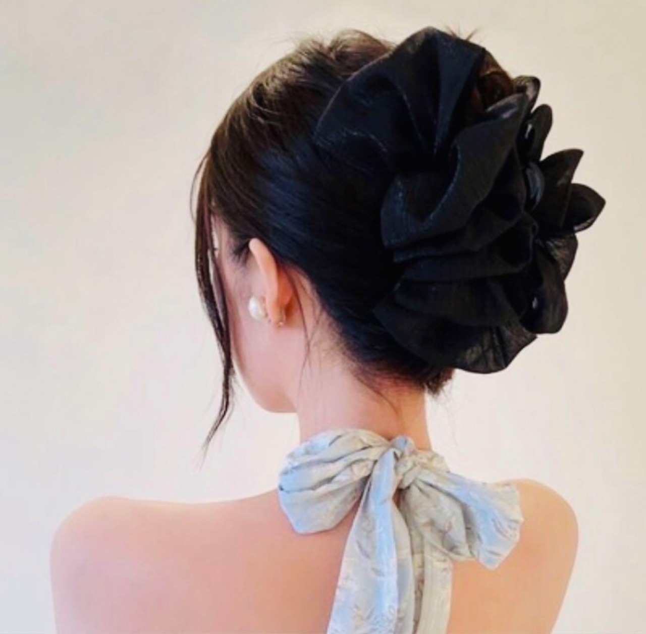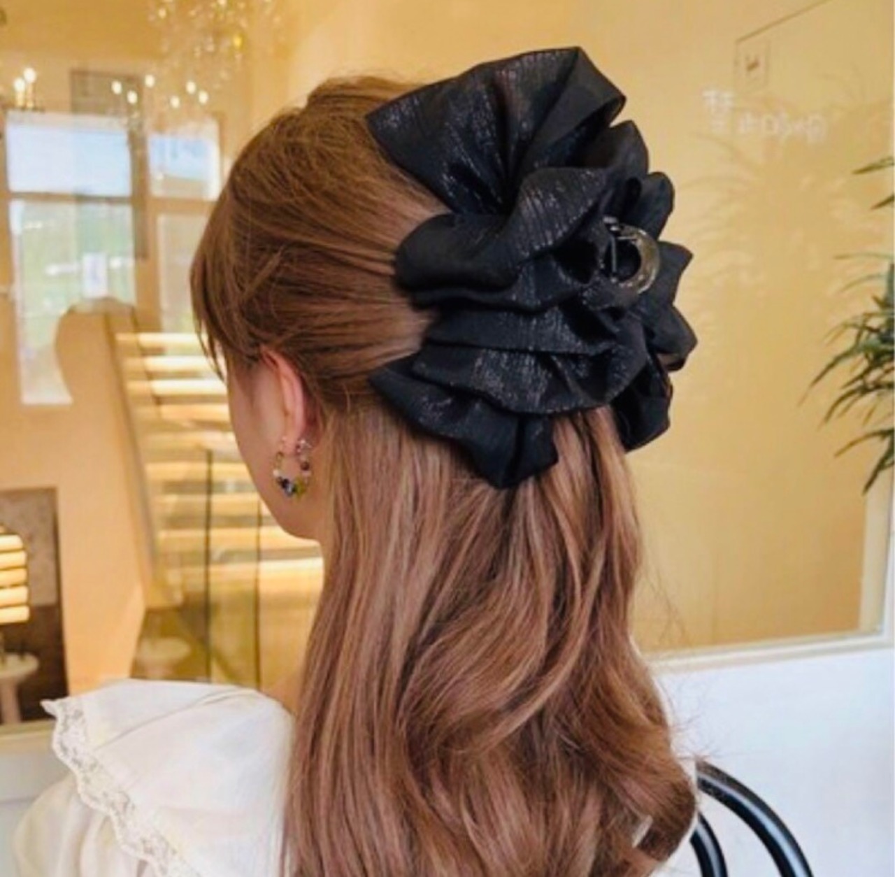 ヘアクリップ リボンフリル ブラック しっかりまとまるまとめ髪 可愛いエレガント